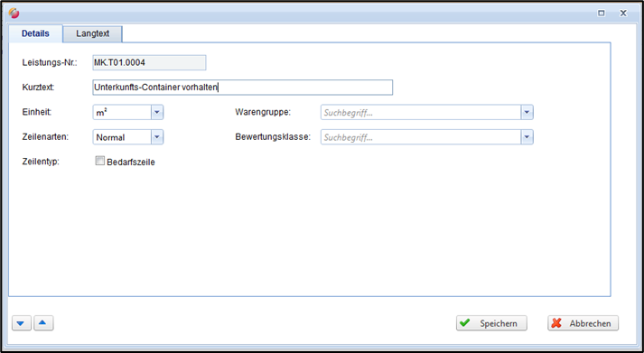 Ändern einer Stamm-Leistungszeile im Detail-Dialog