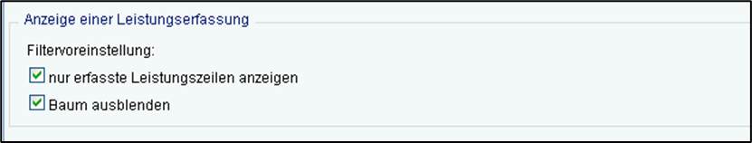 Option "nur erfasste Leistungszeilen anzeigen":
