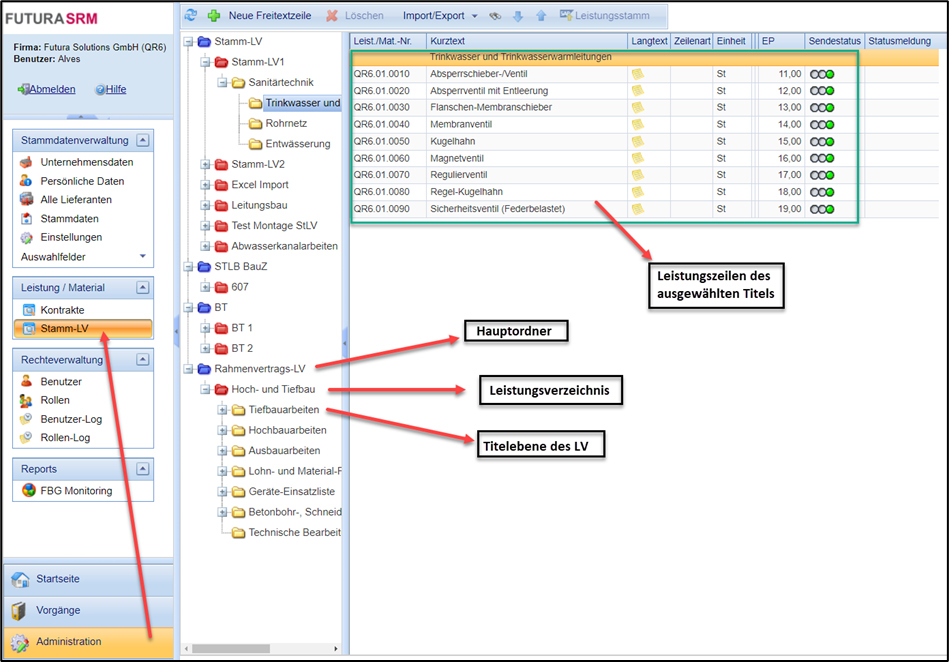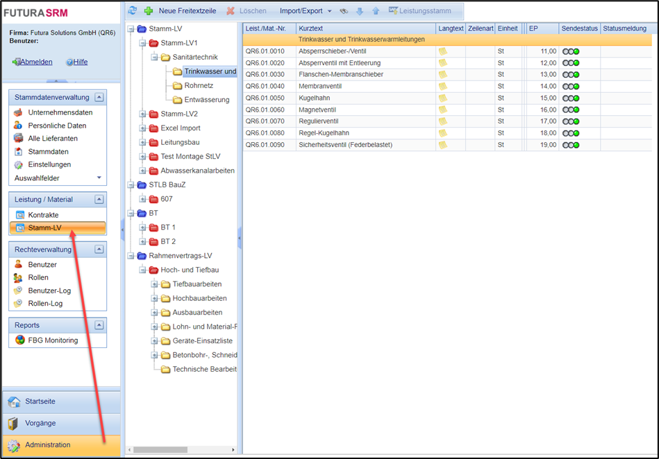 Das Stamm-LV finden Sie in der Navigation unter Administration > Leistungen > Stamm-LV: