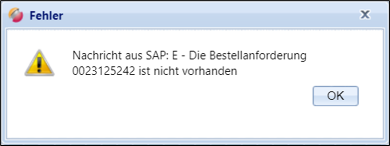 Im Falle, dass die importierte BANF nicht in Ordnung ist, wird Ihnen aus SAP eine entsprechende Fehlermeldung angezeigt.