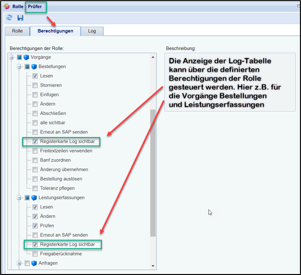Als Administrator können Sie das Anzeigen der einzelnen Logtabellen über die Rechteverwaltung rollenabhängig steuern.