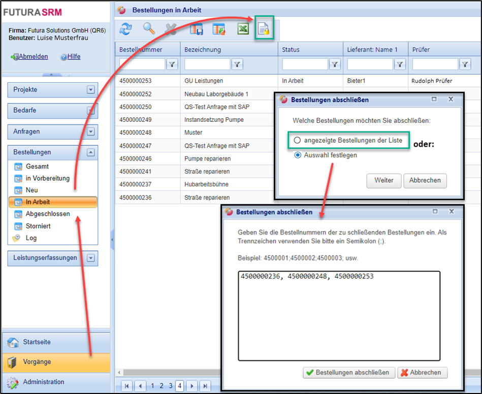 Die im Folgenden beschriebene Funktion steht nur Benutzern mit dem entsprechendem Recht „Bestellung abschließen“ zur Verfügung.