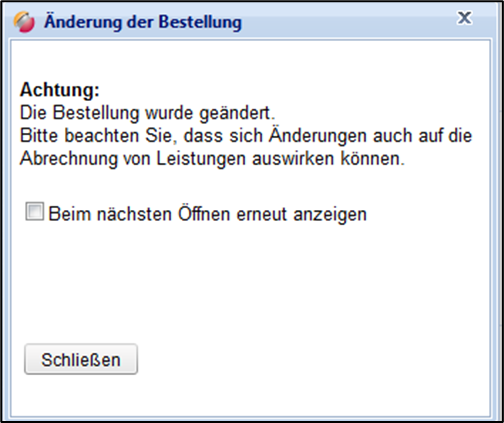 Nach Übermittlung der geänderten Bestellung wird der Lieferant über die Änderung per E-Mail informiert. Des Weiteren erscheint ein Meldungsfenster, sobald er die Bestellung öffnet: