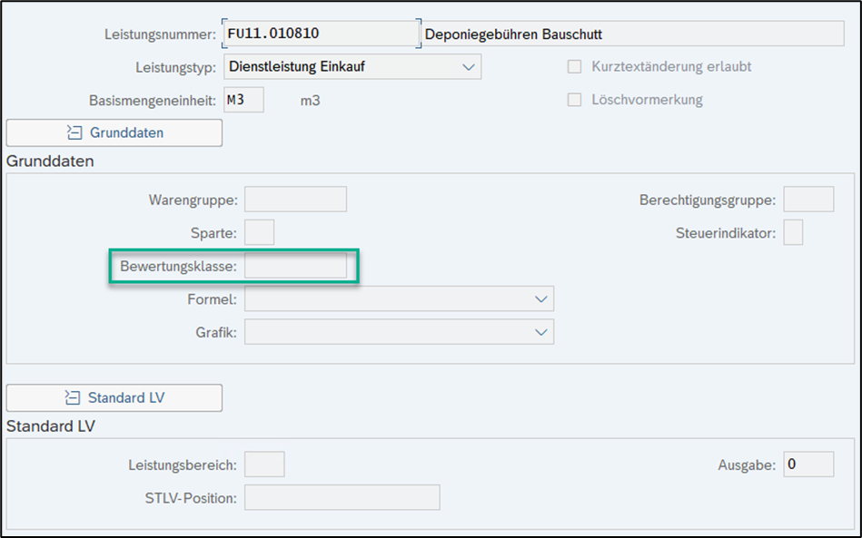 Bewertungsklassen ermöglichen, dass die Werte von Leistungen desselben Leistungstyps auf unterschiedliche Konten gebucht werden können. Mit Hilfe der Bewertungsklasse (zusammen mit anderen Faktoren) finden Sie im SAP-System die Sachkonten, die bei der Leistungserfassung fortgeschrieben werden.