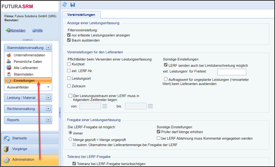 Bitte beachten Sie, dass Sie alle administrativen Einstellungen grundsätzlich nur dann vornehmen, wenn kein User angemeldet ist. Administrative Einstellungen sollten einmalig zu Beginn der Nutzung durchgeführt werden. Andernfalls könnte es zu Prozessfehlern kommen.