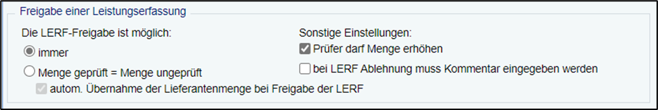 Zusatzoption: „autom. Übernahme der Lieferantenmenge bei Freigabe der LERF“