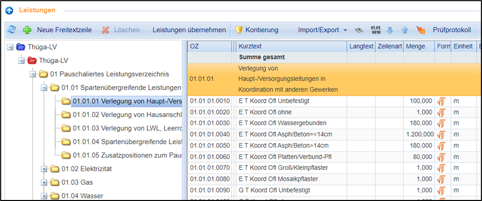 Wählen Sie im Registerreiter “Leistungsverzeichnis” die Position (roter Ordner) aus.