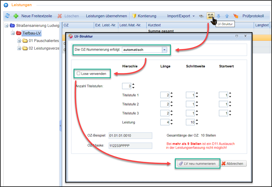 Abschließend klicken Sie auf “LV neu nummerieren”