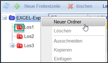 Mit Rechtsklick auf den blauen Ordner und der Auswahl „Neuer Ordner“, können dann weitere Lospositionen angelegt werden.