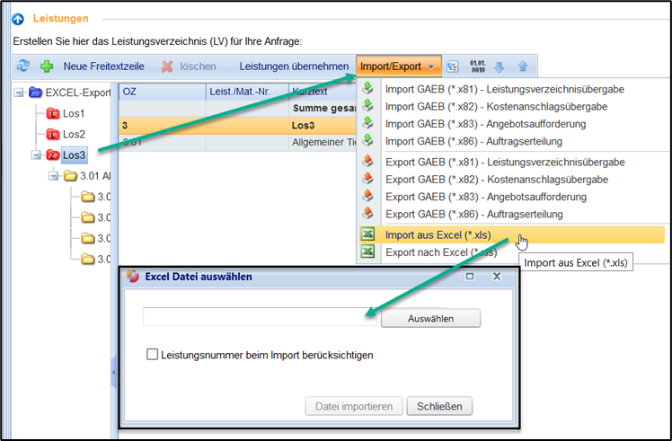 Import mehrerer Excel-Dateien (LV mit Lose)