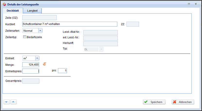 Menge | Menge der Leistungszeile |