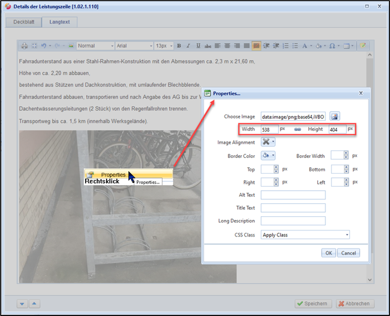 Bilddatei im Langtext editieren