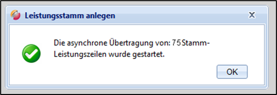 Die Übertragung der Leistungszeilen wird daraufhin gestartet. Für jede Leistungszeile erfolgt ein Schnittstellenaufruf.