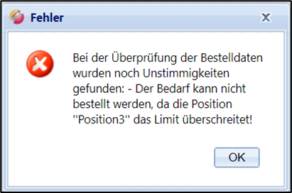 Beim Auslösen der Bestellung erhalten Sie in diesem Fall eine Fehlermeldung: