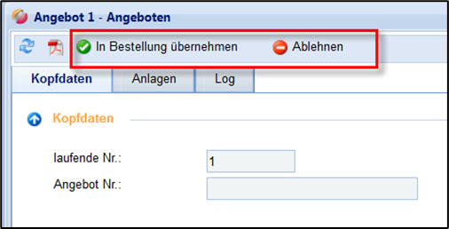 Der zugeordnete Prüfer der Bestellung kann ein Nachtragsangebot in die Bestellung übernehmen oder ablehnen. Im Falle einer Übernahme, wird der Lieferant darüber per E-Mail benachrichtigt.