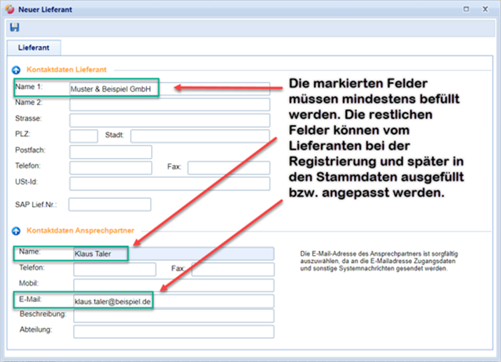 Anlegen eines neuen Lieferanten