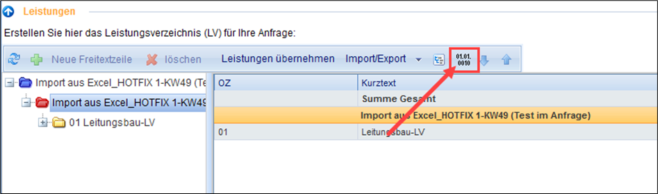 OZ- Nummerierung beim Importieren von GAEB/Excel-Dateien: