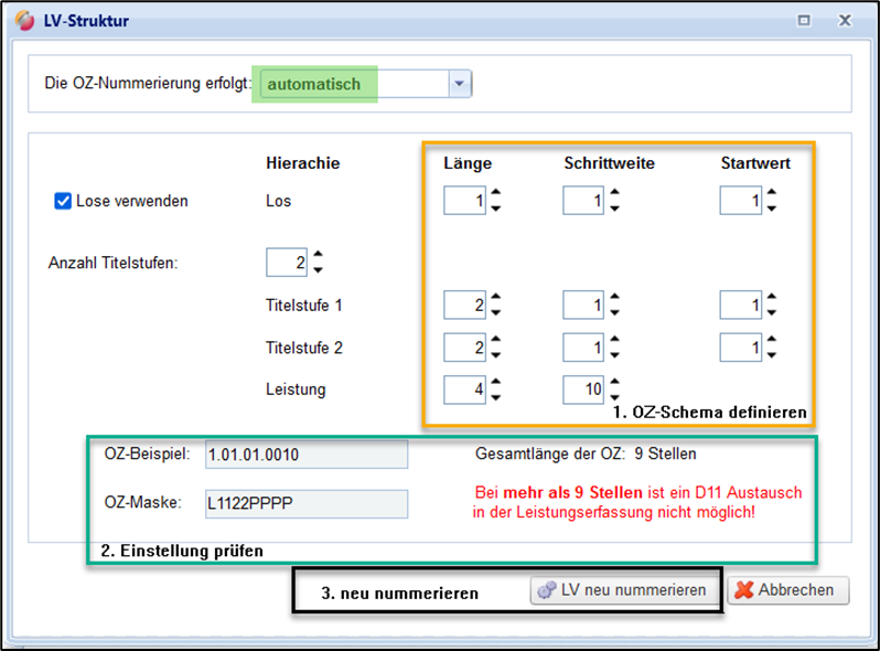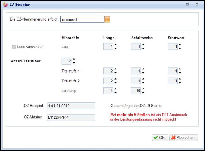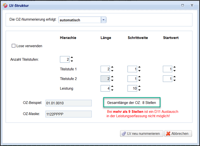 Die OZ-Nummerierung können Sie im Dialog LV-Struktur festlegen: