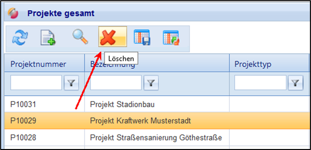 Die Voraussetzung, dass ein Projekt vom User gelöscht werden kann, ist über die Rechtesteuerung der jeweiligen Rolle abhängig. Hierfür muss die Berechtigung für das Löschen von Projekten eingestellt sein. Das Löschen von Projekten ist zudem nur möglich, wenn das Projekt den Status „In Vorbereitung“ hat. D.h., es sind keine Belege zu diesem Projekt angelegt worden.