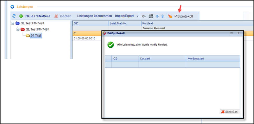 Im Prüfprotokoll kann eingesehen werden, ob die Kontierungen erfolgreich gepflegt wurden: