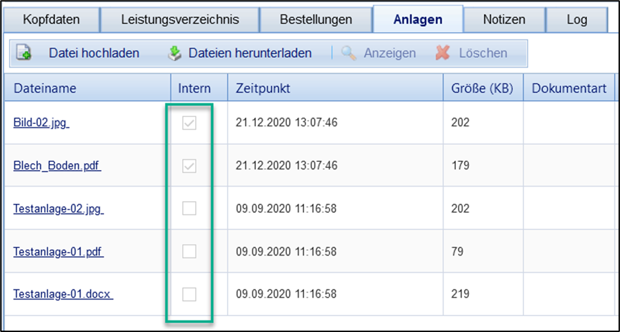 Abb.: Registerreiter Anlagen, Spaltenoption „intern“