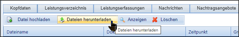 Mit dem Button „Dateien herunterladen“, können Sie alle vorhandenen Anlagen im Registerreiter gleichzeitig und als Zip-Datei herunterladen.