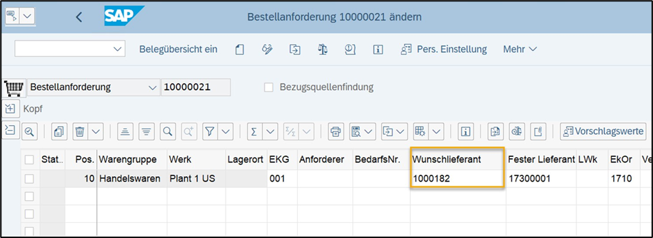 Ansicht Spalte „Wunschlieferant“ in SAP