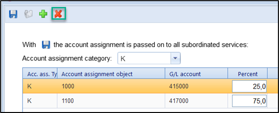 By clicking on, an assigned account assignment object can be deleted from the list. To do this, the line to be deleted must first be marked with a mouse click.