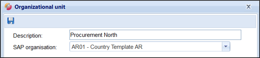 Create new unit → a window opens. Enter the description and assignment of the SAP organizational unit.
