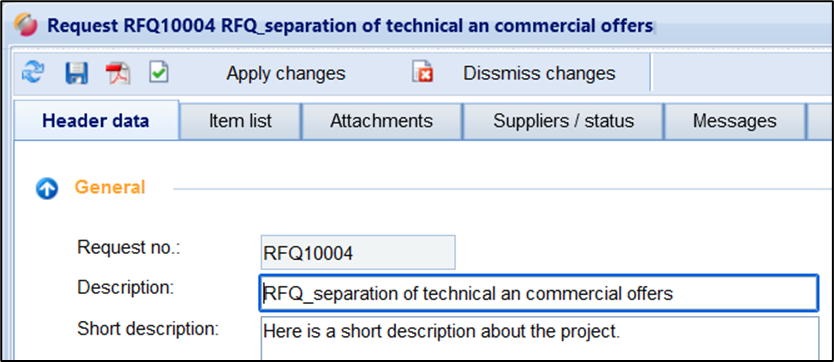 If you have made changes in a request, you must apply the changes for them to take effect. Only with the transfer the changes become visible to the invited suppliers.
