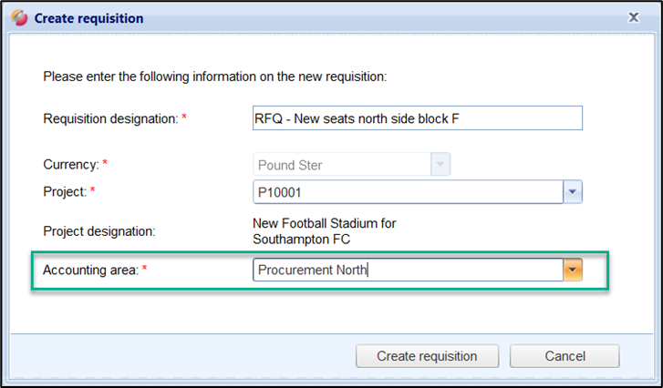 When creating a requisition or request, you now have the option of selecting an organizational unit. The name of the field is taken from the administration.