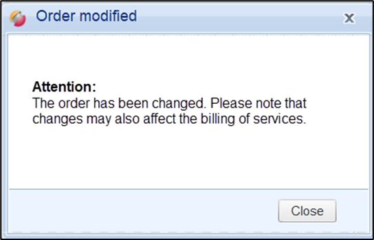 After transmission of the changed order, the supplier will be informed of the change by e-mail. Furthermore, a message window appears as soon as he opens the order: