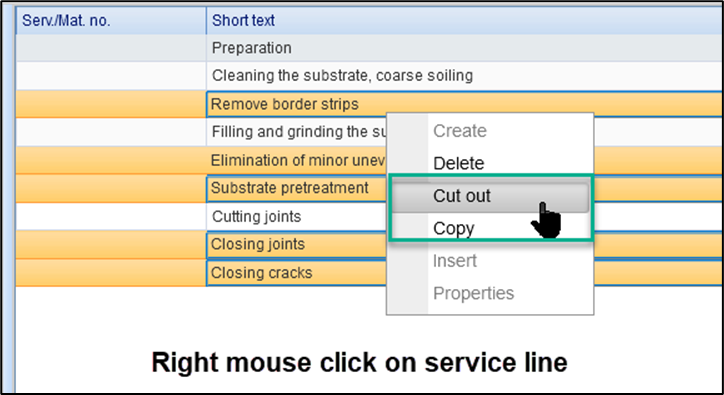 Now select the destination. To do this, select the service line under which the copied service lines are to be pasted and press the right mouse button > paste.