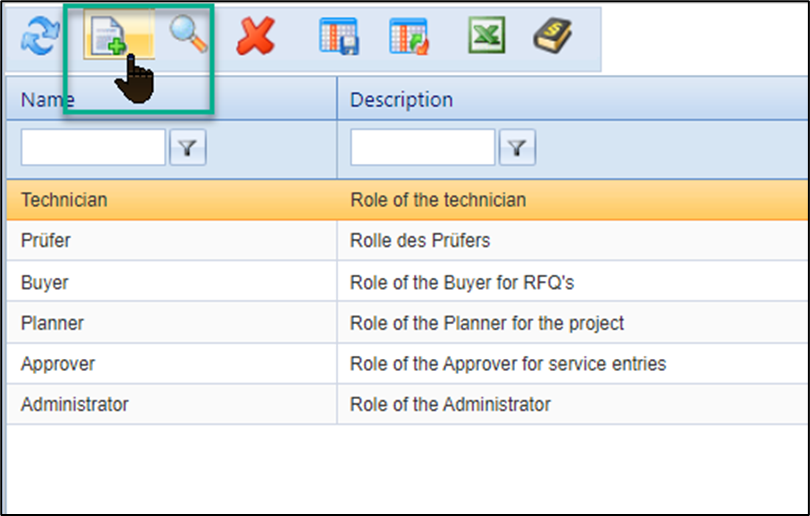 At the start, the default roles Administrator, approver and requisitioner are available. You can create additional roles using the "New" button .