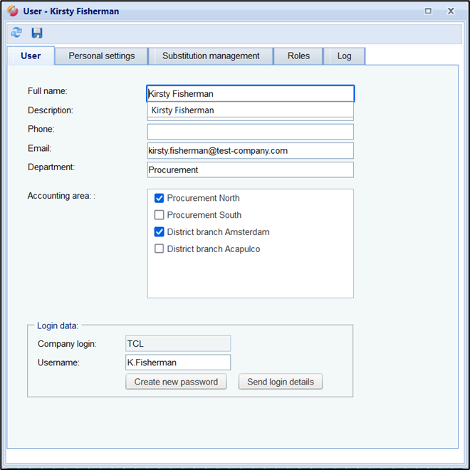 If the user has forgotten his company login and username, you can send the user an e-mail with this data by clicking on the button “Send login details”. It will be sent to the entered e-mail address.