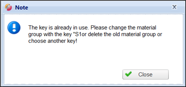 Enter a key name and a label for the material group and save with the floppy disk icon: