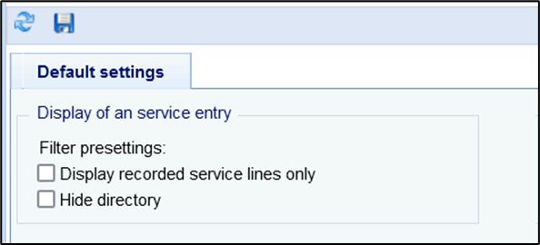 If the option is set, only the entered service lines are automatically displayed for new orders, the button of the same name on the "service entry" tab is active. The setting can be changed again per order