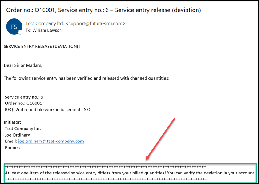 The supplier will be informed of the fact that only partial services of the transmitted final entry have been released by system mail: