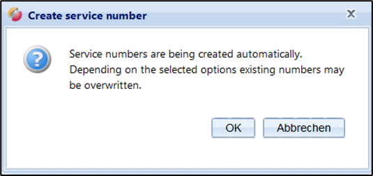 If the option "Overwrite existing service no.", service lines with an existing service number are also renumbered.