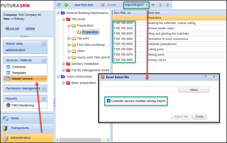 When importing a master item list using GAEB or Excel, the transfer of the service numbers contained therein can be taken into account during the import. For this purpose, the corresponding option must be pre selected before the import.