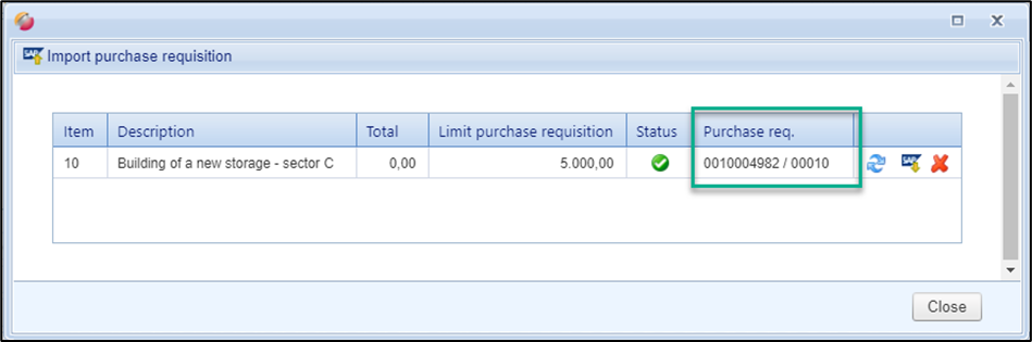 In the event that the imported Purch. Req. is not correct, you will receive a corresponding error message from SAP.