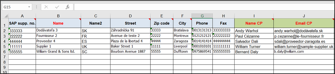 You can import suppliers and their contact persons from Excel into FUTURA Engineering.