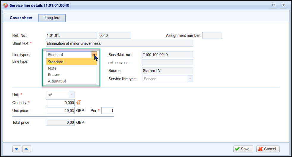Note lines are standardized or freely formulated descriptions that must be considered when pricing. They can refer to the entire Items list, parts of the Items list or individual service lines. A note line consists only of short text and long text.