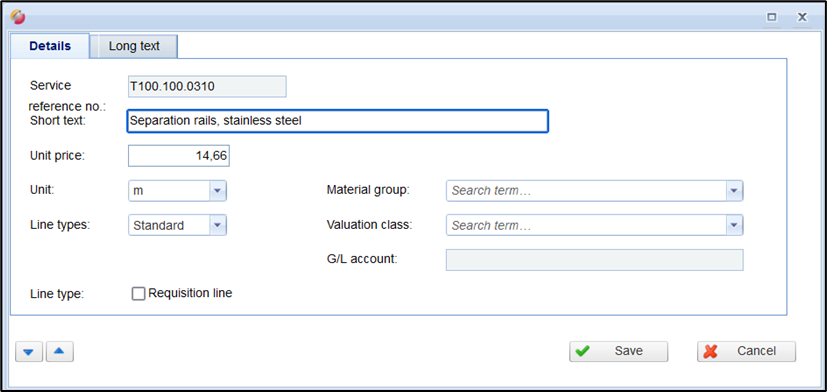 The change has no effect on already processed FUTURA Engineering transactions (requisition, order, etc.) in which the master service line is already used, so there is no update of these transactions!