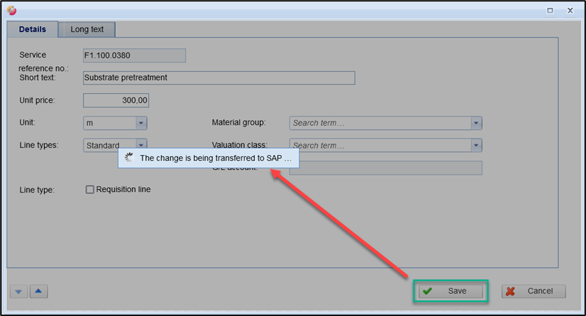 If the service line has already been transferred to SAP, the change is automatically transferred to SAP when saved.