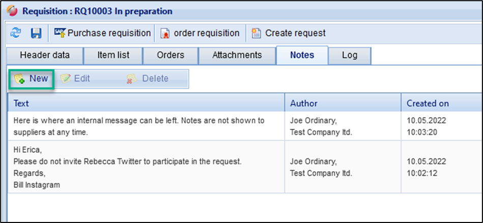 Any number of notes can be created as required. Notes are continuous and are intended to serve the processors of the need for communication exchange.