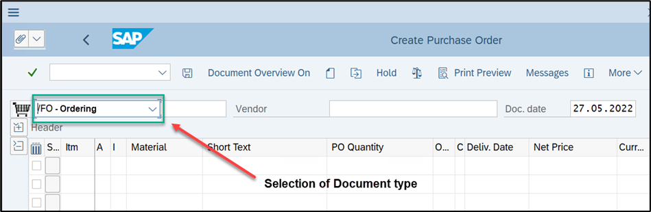 When ordering in SAP, make sure that the correct document type is selected. The document type controls, among other things, the message control of the order and thus the transmission of the order to FUTURA Engineering.
