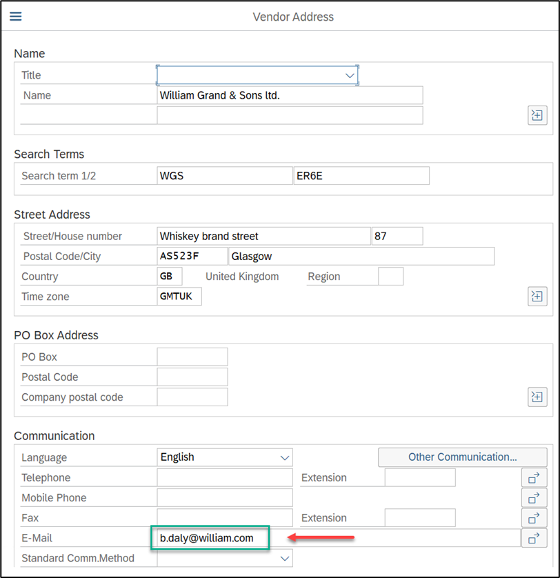 E-mail address of the supplier