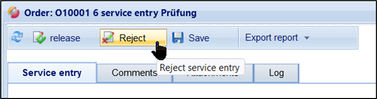 If the checked entry deviates from the quantities of the supplier (differences in the quantities to be billed), the entry can be rejected. Select the desired service entry and click on the button "Reject service entry".