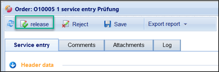 If the supplier's service entry is correct, you can release it. To do this, click on the Release button